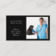 Haga una impresión elegante y profesional con esta tarjeta de visita veterinaria de temática negra. Con una foto de personalizable, nombre e información de contacto, este diseño es perfecto para mostrar su experiencia y conectarse con los clientes. Ideal para veterinarios, clínicas mascotas y profesionales del cuidado de animales que valoran el estilo y la funcionalidad.