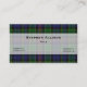 Elegante tarjeta de visita de enchapado hecha en el tradicional patrón de Allison tartan. La parte delantera de la tarjeta tiene una banda blanca semitransparente de borde negro, en el medio de la tarjeta, con texto negro personalizado. La parte posterior de la tarjeta está hecha en blanco, con una tira de lona en la parte inferior y texto negro en la parte blanca. Personalice todo el texto para que se ajuste a sus necesidades. Bonita y profesional tarjeta de visita.