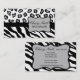 Cree un negocio elegante para una gran impresión. La piel de cebra de rayas coloridas y el diseño gráfico de la piel de chita o leopardo es una de las tendencias artísticas y de diseño más llamativas, y es muy popular entre la moda y la decoración casera. Esta sofisticada colección de huellas de cebra y chita en blanco, negro y gris está diseñada para el estilo. Un emblema gris crea un área de personalización. Este es el personalizable completo de personalizar para incluir su nombre, iniciales de monograma, nombre comercial u otras palabras para su información de contacto para su negocio o para una tarjeta personal.