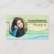 Este colorido diseño de tarjeta de visita acuática presenta un marcador de posición con el nombre de la plantilla y la ocupación en el frente. La parte posterior incluye un campo de texto de plantilla para el nombre comercial y los detalles. Reemplace la foto del marcador de posición con su fotografía. Rellene los campos de personalización, elimine cualquier texto o edite utilizando la herramienta de diseño para seleccionar el estilo de fuente, el tamaño y el color que desee. La foto del marcador de posición es cortesía de pexels.com.