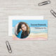 Este colorido diseño de tarjeta de visita acuática presenta un marcador de posición con el nombre de la plantilla y la ocupación en el frente. La parte posterior incluye un campo de texto de plantilla para el nombre comercial y los detalles. Reemplace la foto del marcador de posición con su fotografía. Rellene los campos de personalización, elimine cualquier texto o edite utilizando la herramienta de diseño para seleccionar el estilo de fuente, el tamaño y el color que desee. La foto del marcador de posición es cortesía de pexels.com.