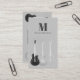 Guitarras semiacústicas en gris monocromático fresco sobre fondo negro, con monograma personalizado, nombre y detalles. El perfecto diseño de tarjetas de visita para guitarristas, músicos profesionales, artistas y profesores de música. Pintura original de la artista Catherine Sweetman