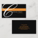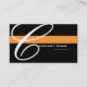 Un fondo negro con una raya anaranjada. Substituya la "C grande" por la primera letra del su nombre de compañía para una mirada de encargo. Toda su información de contacto está en la parte de atrás de la tarjeta. La fuente y el tamaño y el color de fuente pueden ser cambiados.