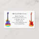 Tarjeta de negocios monograma de personalizado de guitarra moderna. Obra de arte única con colorida guitarra acústica, guitarra semiacústica y guitarra eléctrica en colores brillantes sobre un fondo azul completo con monograma personalizado, nombre y detalles de contacto incluyendo sitio web y correo electrónico. Diseño de tarjetas de negocios con instrumentos musicales coloridos de Guay para guitarristas, músicos profesionales, artistas y profesores de música. Pintura original de la artista Catherine Sweetman