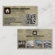 Fuente: Texto, icono de la casa y código QR sobre fondo de patrón de madera. De vuelta a los iconos de los medios sociales, elige el que quieras, borra el resto. Editar foto, iconos y filtro de fondo.