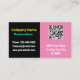 Haga una declaración memorable y profesional con estas modernas tarjetas de visita. La elegante paleta de color negro y rosa negro crea un estilo sofisticado y contemporáneo, tanto moda como profesional. Se integra en el diseño un código QR escaneable prominente, lo que proporciona a los clientes una forma perfecta de conectarse instantáneamente con su sitio web o su cartera en línea. Esta tarjeta es una potente herramienta que combina el estilo clásico con la tecnología de vanguardia, asegurando que usted destaque en cualquier situación de red. Perfecto para emprendedores creativos y consultores que quieren una tarjeta que sea hermosa y funcional a la vez.