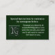 <h>Elegante tarjeta de visita de aspecto elegante con un fondo verde oscuro y una caja con letras estilizadas montadas en personalizado y de aspecto cromado. Tendrás que ponerte en contacto conmigo directamente en mshake5918@yahoo.com con información sobre las iniciales que deseas en tu tarjeta. Normalmente le enviaré un enlace con sus iniciales personalizados dentro de las 24 horas. Esto viene en varios colores de fondo y también con letras doradas. Esta tarjeta tiene muchos usos como tarjeta de visita de aspecto moderno. Empresas de alta tecnología, consultores, abogados, vendedores, consultores de redes, cualquier negocio profesional que quiera una tarjeta de visita pulida y elegante
