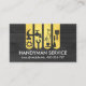 Todas las cubiertas de madera negra tienen aletas doradas que tienen un diseño de herramientas de construcción muy práctico. Las herramientas tienen una capa de madera subyacente para complementar la superficie de la tarjeta. Puede representar algunos de los servicios que ofrece, por ejemplo, el piñón martillo puede representar la remodelación del hogar, el destornillador de cañerías para la fontanería, el paño de horquilla para el paisajismo y el rascacielos para la pintura. Su uso se deja a su propia interpretación. Justo debajo de este motivo se encuentra el nombre comercial "HANDYMAN SERVICE" que puede cambiar junto con los datos de contacto. Al dorso, en la parte superior hay un logotipo de martillo dorado que se puede usar. A esto le sigue su prestigioso nombre, los datos de contacto y una opción de slogan para publicitar sus servicios. Un gran diseño para empresas de manufactura, reparación de casas y construcción. #handyman #estrechtionhandyman #homerepaircontratista #construccion #carpenter #constructora #remodeling #handymantools #constructor #homerepair #interiordesign #generalcontratista #zazzlemade
