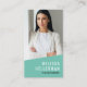 This sleek and simple vertical business card now features a teal or turquoise blue background on the front for a fresh, modern vibe. Your photo, company logo, name, and title or business name stand out in clean white fonts, giving you a polished and professional presence while keeping everything easy to read.