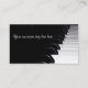 Pianista - profesor - compositor - tarjeta de visita de la banda. Adaptable a cualquier música relacionó trabajo o industria. Utilice el eslogan en la parte posterior para conseguir su mensaje único a través. Un diseño blanco y negro elegante y simple del teclado de piano.
