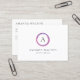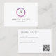 Modern business card featuring a simple yet professional design with your monogram inside of a pink and purple circle. Use the template to generate a QR code or remove it in the design editing tool.