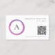 Tarjeta De Visita Pink and Purple Monogram QR Code Modern