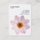 Una plantilla de tarjeta de visita con un atractivo motivo de flor fotográfica aislada. Nombre de la empresa, tipo de negocio y dirección en la parte delantera con nombre, cargo, telefonía, dirección web y correo electrónico en la parte posterior, con el mismo diseño. Esta plantilla también se puede personalizar más.