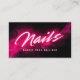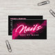 Modern nail technician business cards with bold pink smoke design and neon-style script are perfect for beauty professionals looking to stand out. This vibrant template features an eye-catching neon-style “Nails” with sleek, high-contrast black and hot pink color tones, projecting a confident and stylish salon brand. The back includes space for contact information, social media icons, and a scannable QR code, all laid out cleanly for easy reading and quick client access. Ideal for nail techs and salon owners, this design gives a professional edge while reflecting a trendy, artistic aesthetic. Great for handing out at salons, pop-up booths, or local events, these cards make a lasting impression and help turn first-time visits into loyal clientele.