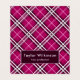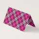 This elegant and modern business card features a pink and white plaid background. The text combines modern sans serif fonts for a classy and sophisticated look.