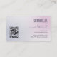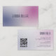 Create a sleek, modern business card design featuring a chic gradient of pink, purple, and white. The minimalist aesthetic is complemented by customizable black typography for a professional touch. Include a QR code and social media icons to connect easily with clients and network online.