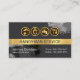 Una cubierta gris con una bandeja de pintura se acentúa con una capa rayada de oro cerca del centro de la tarjeta. Aquí está el nombre de negocio "HANDYMAN SERVICE" que usted puede cambiar. Justo encima de esto hay un logotipo de icono de las herramientas manuales de oro que puedes usar. ; Las herramientas pueden representar algunos de los servicios que ofrece, por ejemplo, la cinta de medida de taladros puede representar remodelación del hogar, construcción, etc. Cerca de la base está tu prestigioso nombre, título de trabajo y los detalles de contacto en el extremo opuesto. Al dorso, los detalles de la tarjeta se encuentran a la izquierda con el logotipo "tejado eléctrico de techo corredizo" que se puede utilizar, colocado en la parte superior. A esto le sigue su prestigioso nombre, detalles de contacto y la opción de slogan para publicitar su negocio. Una gran tarjeta para los empleados y los contratistas de construcción.