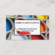 Tarjeta De Negocios Profesional Y Colorida De La Casa. Con Cubos De Pintura En El Fondo Y Un Pincel De Pintura.