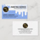 La cubierta presenta un diseño de pintura azul que gotea. En la parte superior está el nombre de negocio "SERVICIO DE PINTURA" junto con un eslogan que puede cambiar. Dentro de una bandeja de pintura a la izquierda hay un logotipo de pincel dorado que puede usar, seguido de su prestigioso nombre y los detalles de contacto. Al dorso, en la cubierta blanca, en la parte superior está el logotipo dorado seguido del nombre de la empresa, sus datos de contacto y una opción de subtítulo de eslogan. Una gran tarjeta para pintores, artesanos y contratistas a usar. Pintura pintor pintor. Pincel. Hombre de mano.