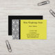 Esta tarjeta de visita moderna tiene una frontera del damasco del vintage en blanco y negro adornando este diseño amarillo limón elegante del fondo que da a su tarjeta de visita un tacto de la clase. Una gran tarjeta de visita para su compañía - o aún para su propio uso personal. El papel con membrete a juego y el franqueo están disponibles.