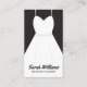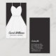 Una tarjeta de presentación elegante en blanco y negro para planificadores de bodas y eventos, que muestra un vestido de novia blanco. El diseño vertical simple y minimalista presenta su nombre y negocio en la parte frontal. La parte posterior se mantiene en negro liso e incluye todos sus datos de contacto. Este diseño es ideal para planificadores de bodas y eventos. También será excelente para boutiques de novias o servicios de alquiler de vestidos de novia.
