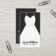 Una tarjeta de presentación elegante en negro y blanco para planificadores de bodas y eventos, que muestra un vestido de novia blanco. El diseño vertical simple y minimalista presenta su nombre y negocio en la parte frontal. La parte posterior se mantiene en negro liso e incluye todos sus datos de contacto. Este diseño es ideal para planificadores de bodas y eventos. También será excelente para boutiques de novias o servicios de alquiler de vestidos de novia.