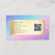 Un elegante diseño de estrella bokeh de color morado, azul y rosa con oro cepillado para los planificadores de eventos y más. Personalice el nombre del guión negro, la ocupación, el nombre del negocio, el código QR y la información de contacto en la parte posterior.