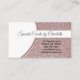 Un purpurina falso rosa marca el fondo de este diseño de tarjeta de visita con el nombre y el título de la plantilla a la izquierda con el marcador de posición de código QR en un lado. La parte posterior incluye un diseño coordinado y colores con campos de texto para el nombre comercial y los detalles. Reemplace el marcador de posición con el código QR en la parte delantera. Rellene los campos de la plantilla o haga clic en personalizar para seleccionar un estilo de fuente, tamaño y color que desee. Usa tu código QR para enviar clientes a tu sitio web, reseñas, fotos u otra página especial.