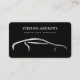 Un diseño sencillo y elegante de tarjetas de visita con fondo negro y el logotipo metálico plateado de un coche de lujo. Personalizar los detalles y hazlo propio. Un diseño ideal para el detalle de coches, lavado de coches, limpieza de coches, mecánica, reparación de automóviles, ingeniero, reparación y servicio de motores de coches, piezas de coches, etc.