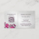 Esta elegante tarjeta de visita floral presenta delicadas flores rosadas calientes con una sombra sobre un fondo plateado, perfecta para los profesionales creativos y basados en el servicio que quieren dar una impresión de diseño. La parte trasera incluye espacio para información de contacto esencial y un código QR que vincula a tu sitio web, medios sociales o portafolio. Ideal para: maquilladores, estilistas de cabello, esteticistas, técnicos de uñas, artistas de lash o frente, masajistas, floristas, planificadores de bodas, instructores de yoga, creadores de contenido, propietarios de tiendas o cualquier pequeño empresario con amor por la belleza y el diseño.