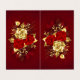 La composición de dos rosas rojas pintadas artistalmente y un rosa dorado, decorado con oro, hojas de joyas sobre fondo texturado.