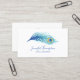 El elegante diseño de las tarjetas de visita de moda cuenta con un hermoso ilustracion de plumas de pavo real acuático. Perfecto para planificadores de eventos, diseñadores florales, diseñadores gráficos, maquilladores y peinadores, entre otros.