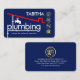 At the top lies your prestigious name alongside a set of gold plumbing icons. Near the base is a slogan caption option you can change.