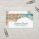 Esta sofisticada tarjeta de visita cuenta con un lujoso y polvoriento diseño de acuarela verde azulada, complementado con acentos dorados cálidos y brillantes. Ideal para peinados, maquilladores, esteticistas y otros profesionales creativos que quieren exudar elegancia y profesionalismo. El equilibrio de tonos tierra y detalles metálicos garantiza un diseño atemporal y único.