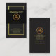 Una simple tarjeta gris oscuro encapsulada por un falso borde rectangular dorado. Cerca del centro hay una columna negra que alberga su prestigioso nombre y título de trabajo. Un logo dorado de un chófer está entre estos dos artículos. En la base se encuentran el nombre de negocio y los detalles de contacto.