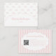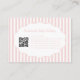 Trendy vintage-inspired pink bow stripe pattern business card designed for pretty, girly, feminine brands. Perfect for handmade baby clothing boutiques, makeup artists, and small business owners. Features stylish QR code integration for modern networking and professional branding appeal.