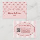 Trendy vintage-inspired pink red bow stripe pattern business card created for pretty, girly, feminine brands. Ideal for handmade baby clothing boutiques, makeup artists, and small business owners. Includes stylish QR code placement for modern networking and eye-catching professional branding.