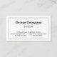 Este diseño de tarjetas de visita de estilo antiguo cuenta con un nombre, profesión e información de contacto que se puede personalizar. También dispone de un borde de doble línea con una línea discontinua entre ambos. Tarjetas de visita como estas pueden ser utilizadas por un profesional como un gerente o un dentista.