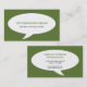 Mantenga su atención con estas tarjetas de visita audaces y contemporáneas. El nombre de la empresa y la información de contacto se presentan en tipos de letra limpios y modernos dentro de una burbuja de habla. El fondo de color vendido le ayudará a distinguirse del resto.