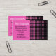Elegante tarjeta de visita de aspecto moderno con un patrón polka punto de color negro y rosa. Esto viene en varios colores. Esta tarjeta tiene muchos usos como tarjeta de visita de aspecto moderno. Empresas de alta tecnología, consultores de computación, consultores de redes, cualquier negocio moderno de alta tecnología que busque y un diseño fresco y arriesgado.