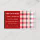 Elegante tarjeta de visita de estilo moderno con un patrón polka punto de blanco y rojo. Esto viene en varios colores. Esta tarjeta tiene muchos usos como tarjeta de visita de aspecto moderno. Empresas de alta tecnología, consultores de computación, consultores de redes, cualquier negocio moderno de alta tecnología que busque y un diseño fresco y arriesgado.