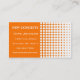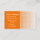 Elegante tarjeta de visita de aspecto moderno con un patrón polka punto de blanco y naranja. Esto viene en varios colores. Esta tarjeta tiene muchos usos como tarjeta de visita de aspecto moderno. Empresas de alta tecnología, consultores de computación, consultores de redes, cualquier negocio moderno de alta tecnología que busque y un diseño fresco y arriesgado.