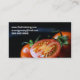 Tarjeta de visita profesional para el chef de la restauración creada para los profesionales de la restauración, restaurantes, chefs, empresas de servicios de comida y más. Diseñado con un grupo de tomates rojos fuertes y audaces sobre un fondo negro con texto blanco brillante. Para personalizar, simplemente inserte sus detalles específicos en nuestra plantilla fácil, reemplazando el ejemplo.