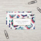 Audaz marco dorado rodeado por un moderno y abstracto floral de color azul turquesa, marino, verde y naranja, elegante y elegante. Tarjeta profesional personalizada para floristas, diseñadores gráficos, diseñadores de moda y cualquier otra ocupación.