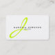 Tarjetas de visita profesionales personalizadas modernas y elegantes del monograma gris claro. Negro y verde lima en fondo blanco llano. elpmonogram
