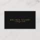 Tarjeta profesional simple y moderna de color negro y oro con su nombre en el estilo de fuente moderno sans serif y profesión en el estilo moderno de letra caligrafía. Perfecto para un maquillador, diseñador, fotógrafo, planificador de bodas y muchas otras profesiones. Tenga en cuenta que el Relieve metalizado de oro que se muestra en el producto es un efecto impreso, no un Relieve metalizado real de oro.