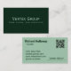 Dé una fuerte impresión con el diseño elegante y moderno de las tarjetas de visita. Con un fondo verde oscuro y audaz con el nombre y el lema de su empresa en la parte delantera, transmite confianza y profesionalismo. La parte posterior muestra su nombre, título, detalles de contacto y un código QR escaneado para un acceso digital rápido. Perfecto para emprendedores, ejecutivos, consultores y profesionales que quieren una herramienta de trabajo en red limpia e impactante.