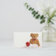 El oso de peluche marrón claro consigue listo para enseñar a la clase con su libro y a su manzana por la suya tarjeta de visita de encargo de los educadores lindos del lado