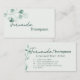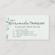 The front highlights your name in a graceful handwritten script paired with a clean sans-serif font, while the back presents your title, contact information, and website framed by a subtle leaf motif. The soothing green palette evokes freshness, balance, and natural elegance, ensuring a memorable impression for every client.