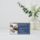 The front side highlights your name, title, and contact details on a clean blue background accented with a fine gold frame, ensuring readability and elegance. The back side features a realistic desk photo with your firm’s name and slogan, emphasizing professionalism and attention to detail.